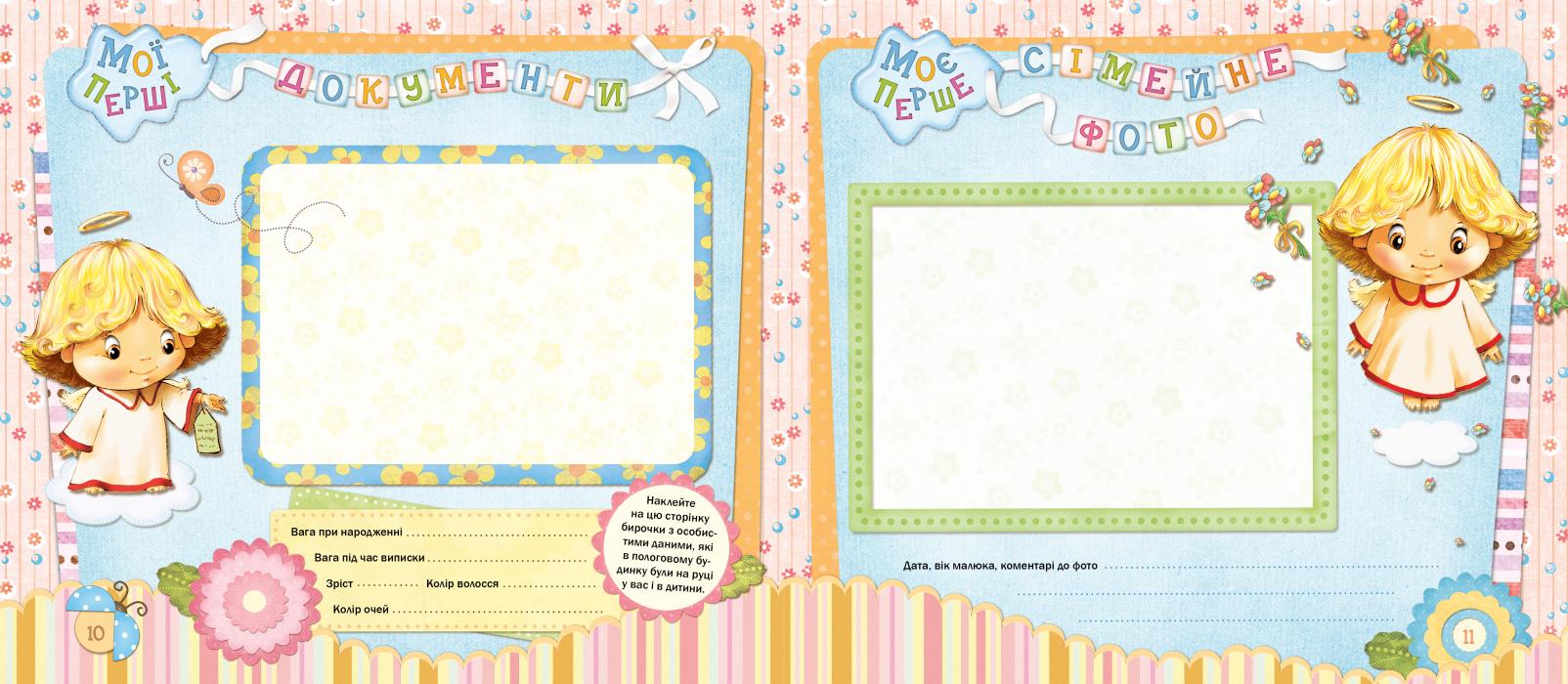 У вашій сім’ї з’явилася дитина. Скільки принесла вона радощів! У перший рік її життя відбувається багато подій, важливих для дитини і не менш важливих для батьків: вона вперше усміхається, робить перший крок, уперше каже «мама»... Але час летить швидко, і ваша крихітка незабаром стане зовсім дорослою! Цей альбом допоможе зберегти спогади про найдивовижніші й найтепліші моменти в житті дитини. Гортаючи його сторінки, ви повернетеся в той час і переживете їх заново.