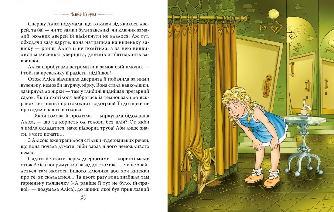 Ця книжка — шедевр дитячої літератури. Ще за життя автора її було перевидано більше ніж тридцять разів. Герої книжки — Капелюшник, Солоний Заєць, Чеширський Кіт та інші стали улюбленими для багатьох поколінь юних читачів і їхніх батьків, діставши прописку в прислів’ях і приказках. У захваті від цієї повісті була навіть англійська королева Вікторія. Дух безсмертного твору продовжує жити і в численних екранізаціях цієї казкової повісті.