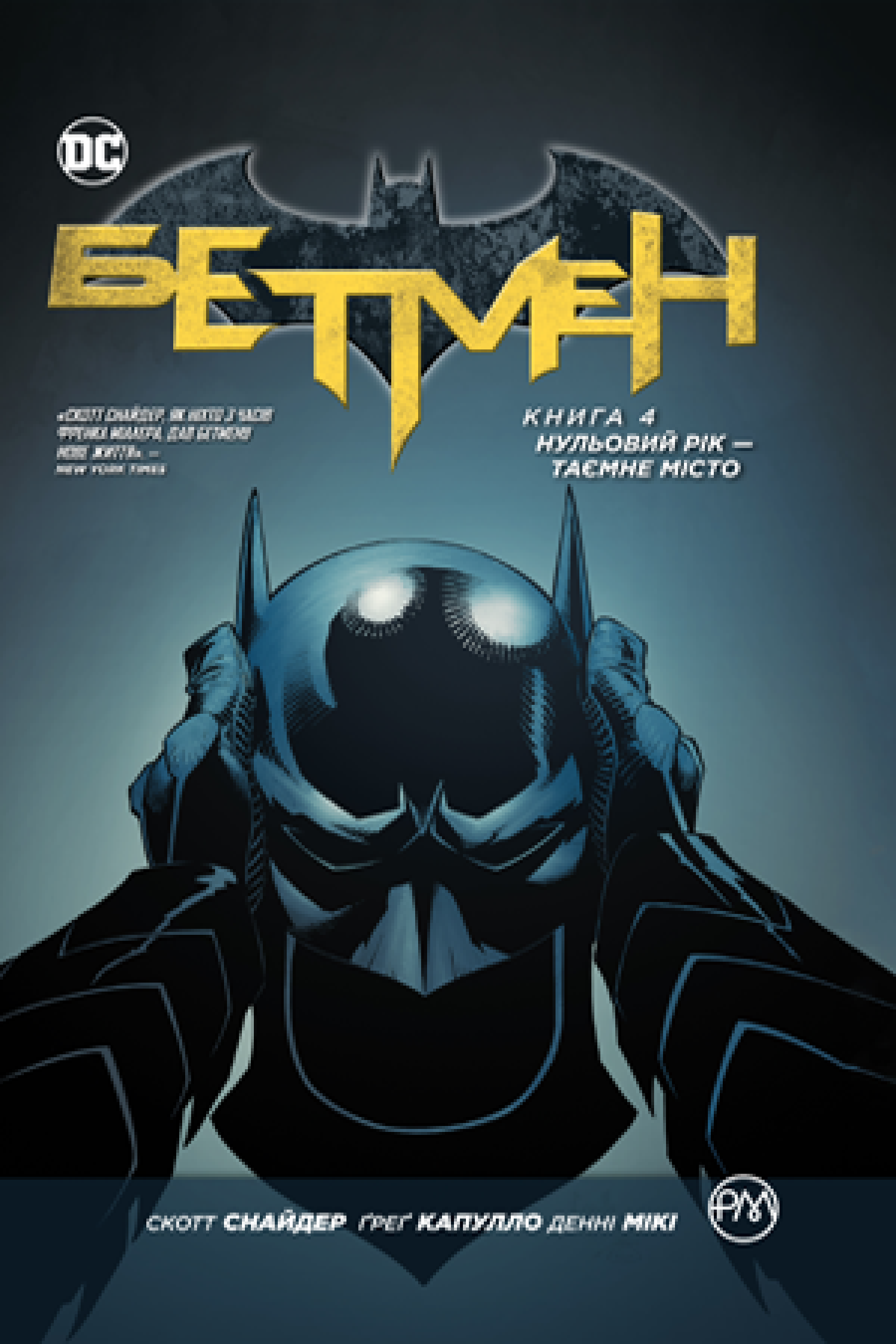 Креативна команда творців бестселерів — СКОТТ СНАЙДЕР, ҐРЕҐ КАПУЛЛО, ДЕННІ МІКІ, РАФАЕЛЬ АЛЬБУКЕРКЕ та ДЖЕЙМС ТАЙНІОН — представляє нове, вражаюче бачення походження Темного Лицаря, його перші зустрічі з Загадником, Червоним Ковпаком і не тільки — у «БЕТМЕН. КНИГА 4: НУЛЬОВИЙ РІК — ТАЄМНЕ МІСТО»!