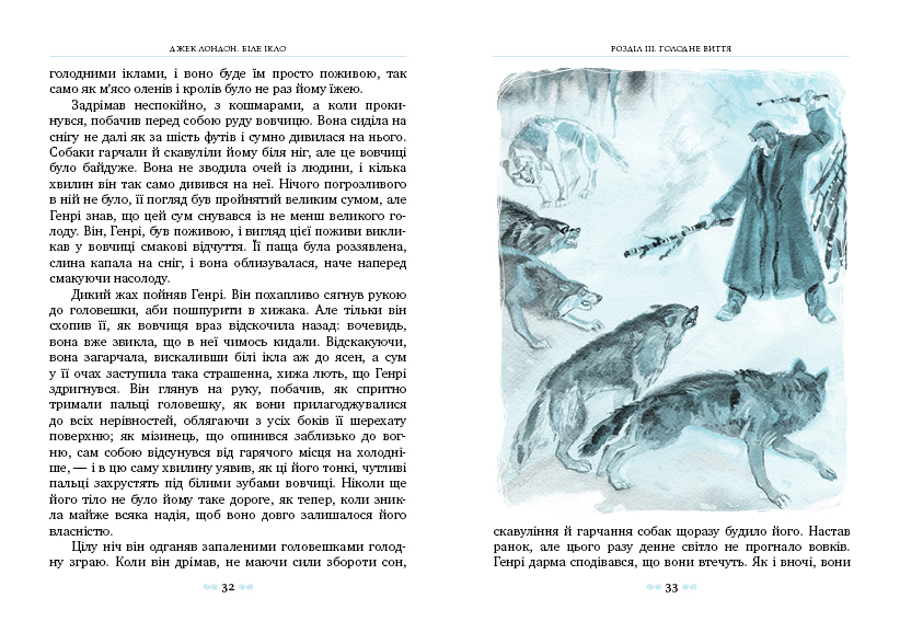 Пригодницька повість класика американської літератури Джека Лондона описує події часів золотої лихоманки на Алясці. Жорстокий і суворий світ оточує головного героя Біле Ікло, напіввовка-напівсобаку, від самого його народження і загрожує неминучою загибеллю. Лише зустріч із добрим хазяїном допомагає йому знайти себе. Це книжка про силу любові, вірності та відданості, про справжню дружбу між твариною і людиною.