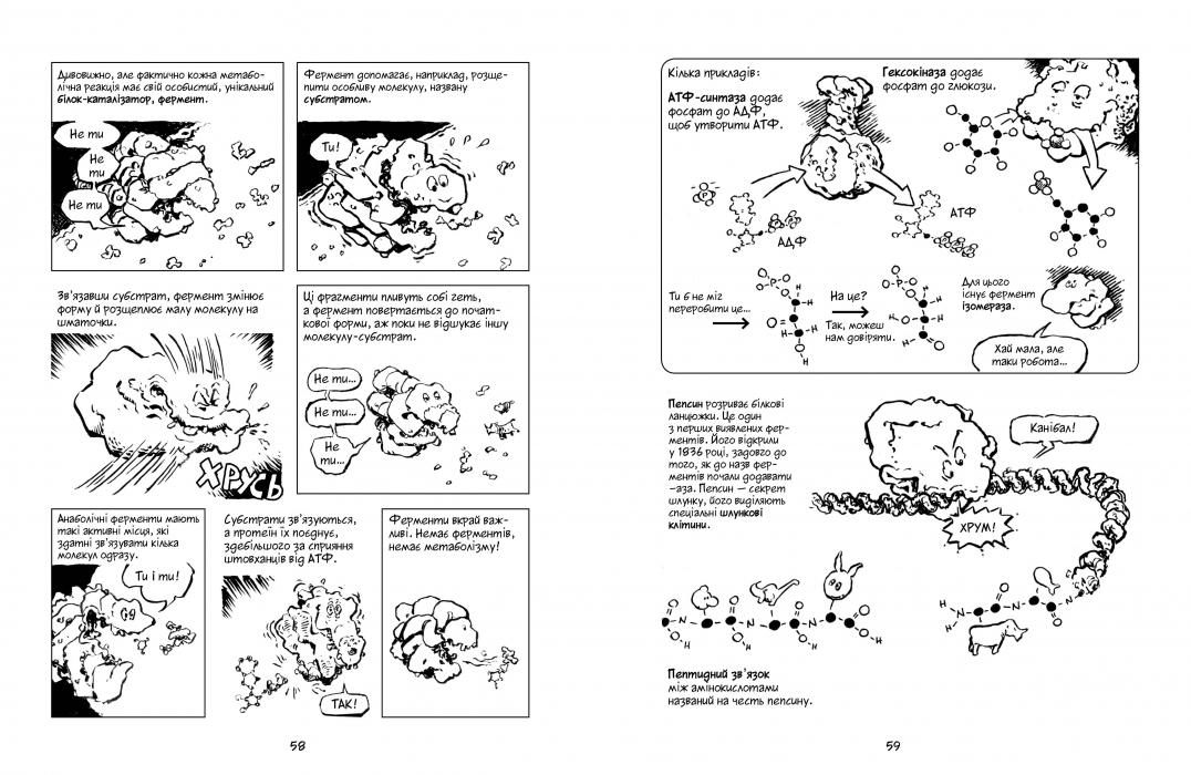 Ви ціпенієте, коли вчитель просить розрізати жабу? Ви досі думаєте, що ДНК розшифровується як «Дуже НеКомпетентний»? Гадаєте «цикл Кребса» — це ще один сучасний транспортний засіб, щоб гасати містом? Якщо ви відповіли ствердно хоча б на одне з цих запитань, вам не обійтися без «Біології» з серії «Наука в коміксах». Цей пізнавальний і веселий посібник створили популяризатор науки Ларрі Ґонік і біолог Дейв Весснер — випускник Гарвардського університету, професор біології та завідувач кафедри «Здоров’я і людські цінності» при Девідсонському коледжі, який читає курси «Вступ до біології», «Мікробіологія» і «ВІЛ/СНІД».