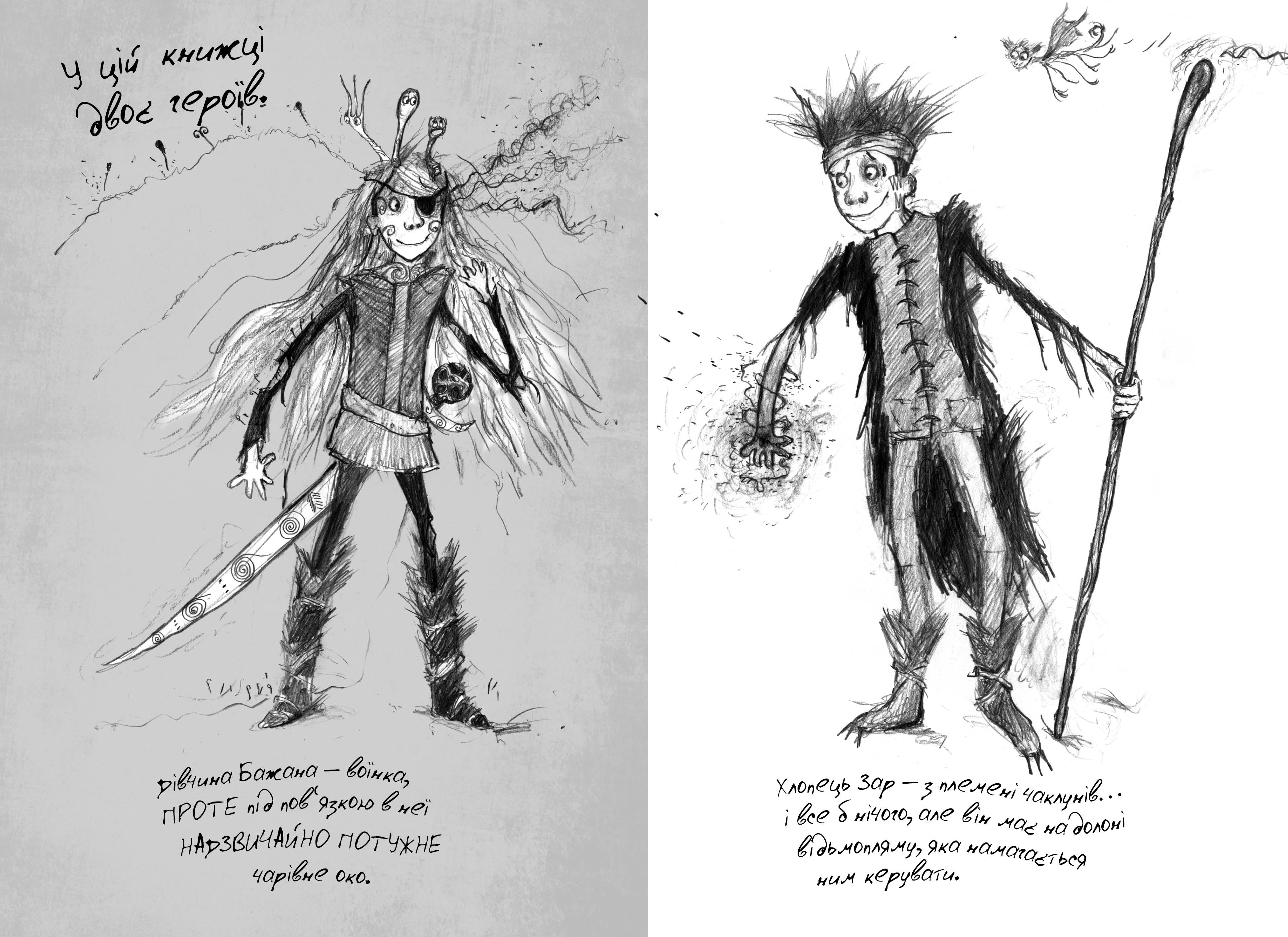 Дівчина Бажана — воїнка, що має чарівну ложку та чарівне око. Хлопець Зар — чаклун, проте в нього на долоні небезпечна відьмопляма. Бажана й Зар тепер беззаконники-втікачі, на яких полюють і воїни, і чаклуни, і щось значно гірше — ВІДЬМАКИ.