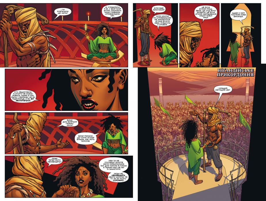 Т’ЧАЛЛА стикається з драматичним переворотом у Ваканді, який як ніколи ускладнить правління державою! Коли надлюдська терористична група, що називає себе Народ, починає жорстоке повстання, африканська країна, відома своїми надзвичайними технологіями й величними військовими традиціями, опиняється у смуті. Т’Чалла намагається об’єднати своїх громадян, наляканих терористами-смертниками, а тим часом із тіней виходить знайомий лиходій. Якщо Ваканда хоче вижити, то їй доведеться адаптуватися. Та чи зможе її монарх, наступник довгого роду Чорних Пантер, пережити необхідні зміни? Важка та голова, на якій корона!