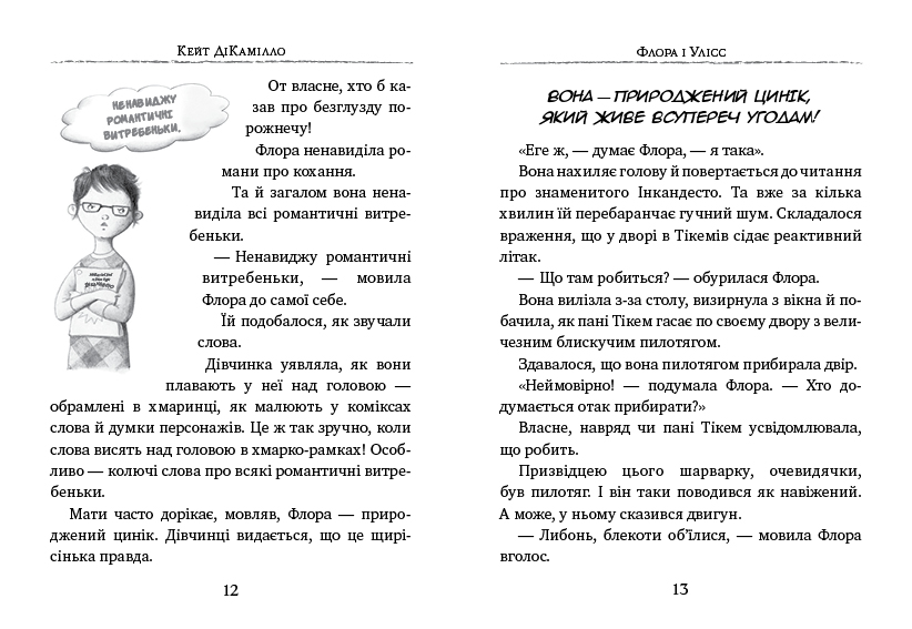 Талановита американська письменниця Кейт ДіКамілло розповідає неймовірну історію про дивовижну дружбу дівчинки Флори та білки-супергероя на ім'я Улісс.