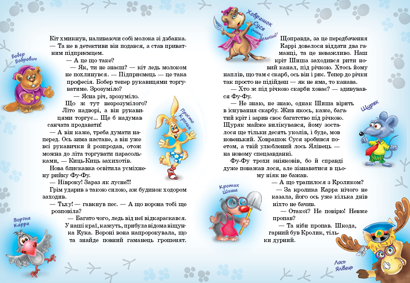 Казкову повість про веселі пригоди знаменитих детективів пса Фу-Фу і кота Киць-Киця та їхніх друзів — лісових мешканців — діти прочитають із захопленням. Юні читачі разом із героями книжки потраплятимуть у кумедні ситуації, долатимуть несподівані перешкоди і розгадуватимуть найзаплутаніші таємниці.