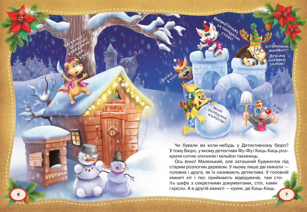 Фу-Фу та Киць-Киць прикрашають Бюро перед Звіроновим роком. Вони не підозрюють, що ось-ось станеться якийсь злочин і свято опиниться під загрозою! Детективам доведеться відкласти всі свої нагальні справи і зайнятися розслідуванням загадкової крадіжки… Магія, несподівані гості, розбуджений серед зими кріт Шиша — ось що чекає на вас на сторінках цієї книжки!