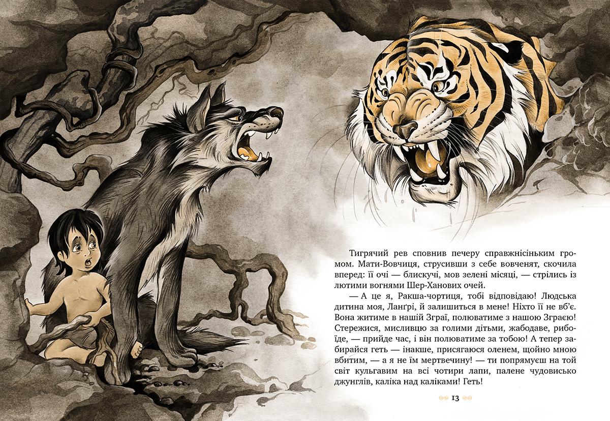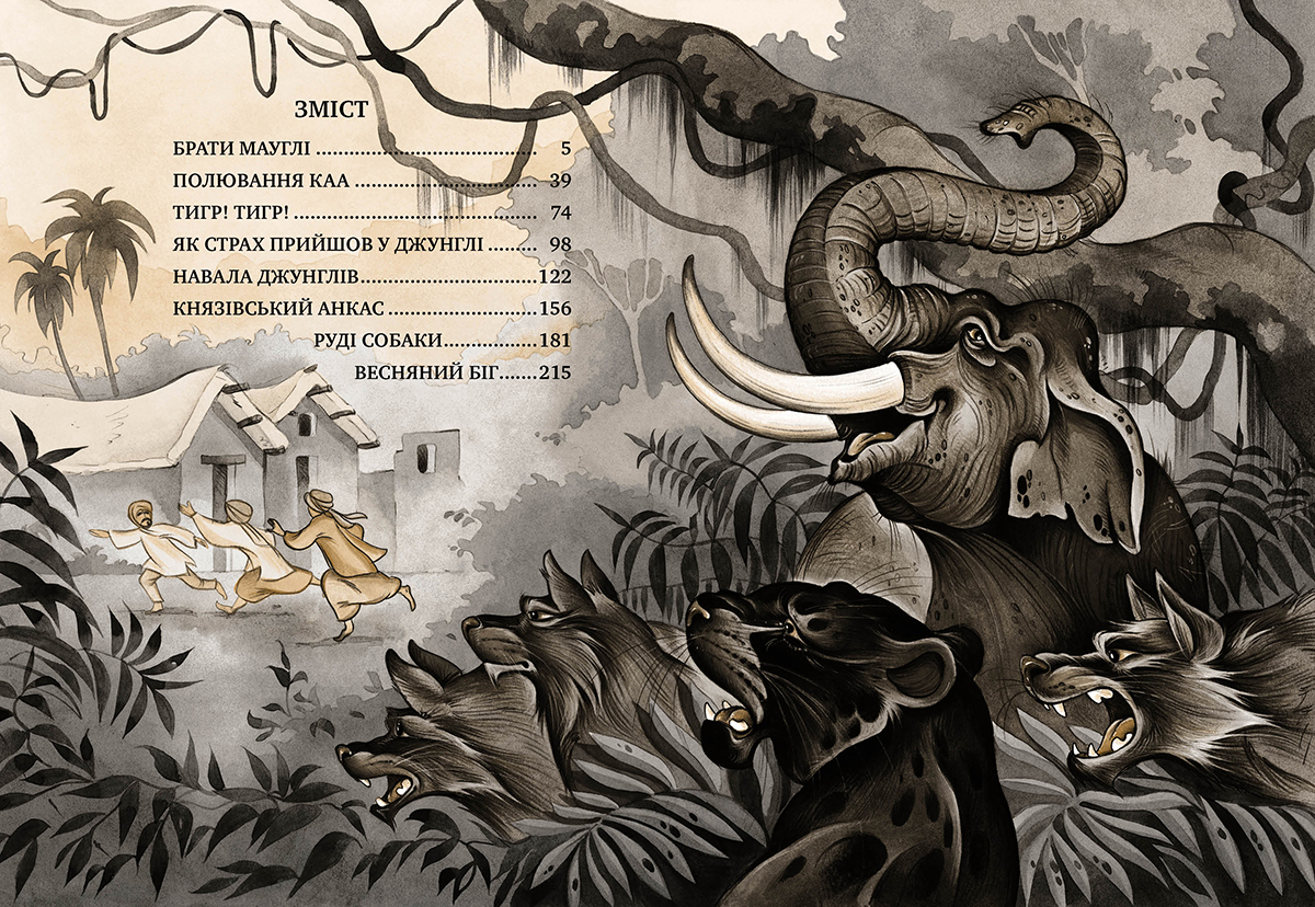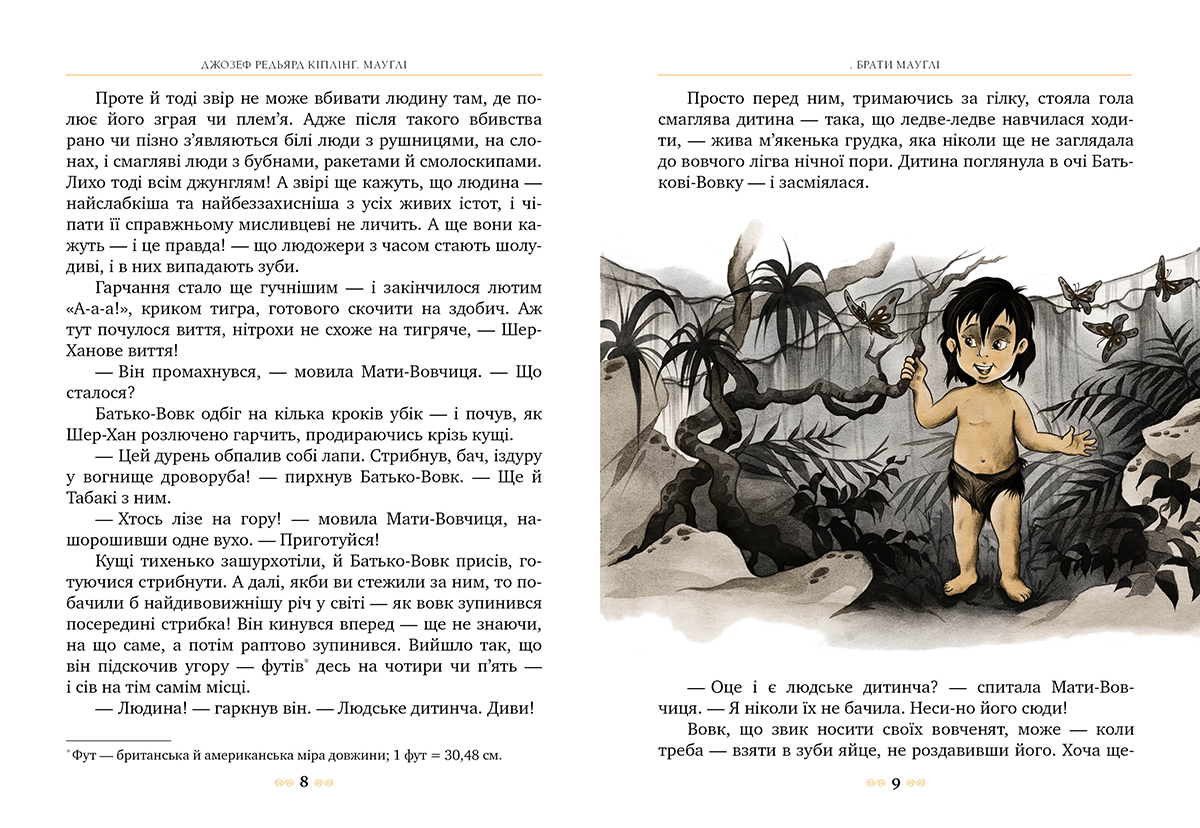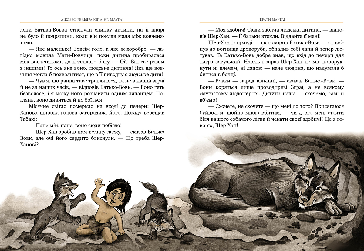 Лауреат Нобелівської премії з літератури Джозеф Редьярд Кіплінг розповідає цікаву історію індійського хлопчика Мауглі, якого прихистила й виховала в джунглях вовча зграя. Сміливий і кмітливий Мауглі разом з вірними друзями переміг зажерливого Шер-Хана, підступних Бандар-логів і лютих Дгоулів — Рудих Собак. Це одна з тих вічних історій, що захоплюватиме і юних, і дорослих читачів у всі часи.