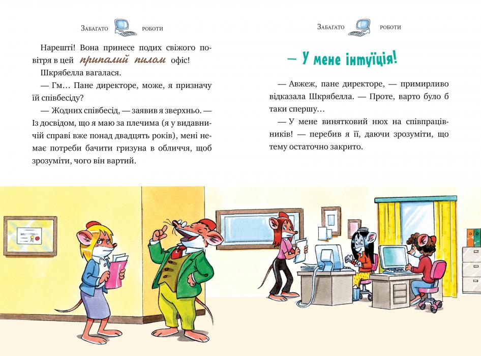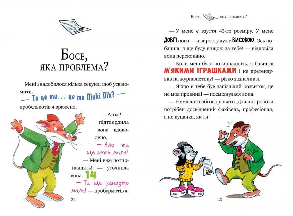 У першій книжці ти познайомишся з директором Стілтоном, поважним мишаком-видавцем, який живе в мишиному місті. Дізнаєшся, як він змінився завдяки новій співробітниці — чотирнадцятилітній Пінкі Пік. Побуваєш зі Стілтоном на криголамі, на айсбергу та зустрінеш із ним Новий рік на Північному полюсі!