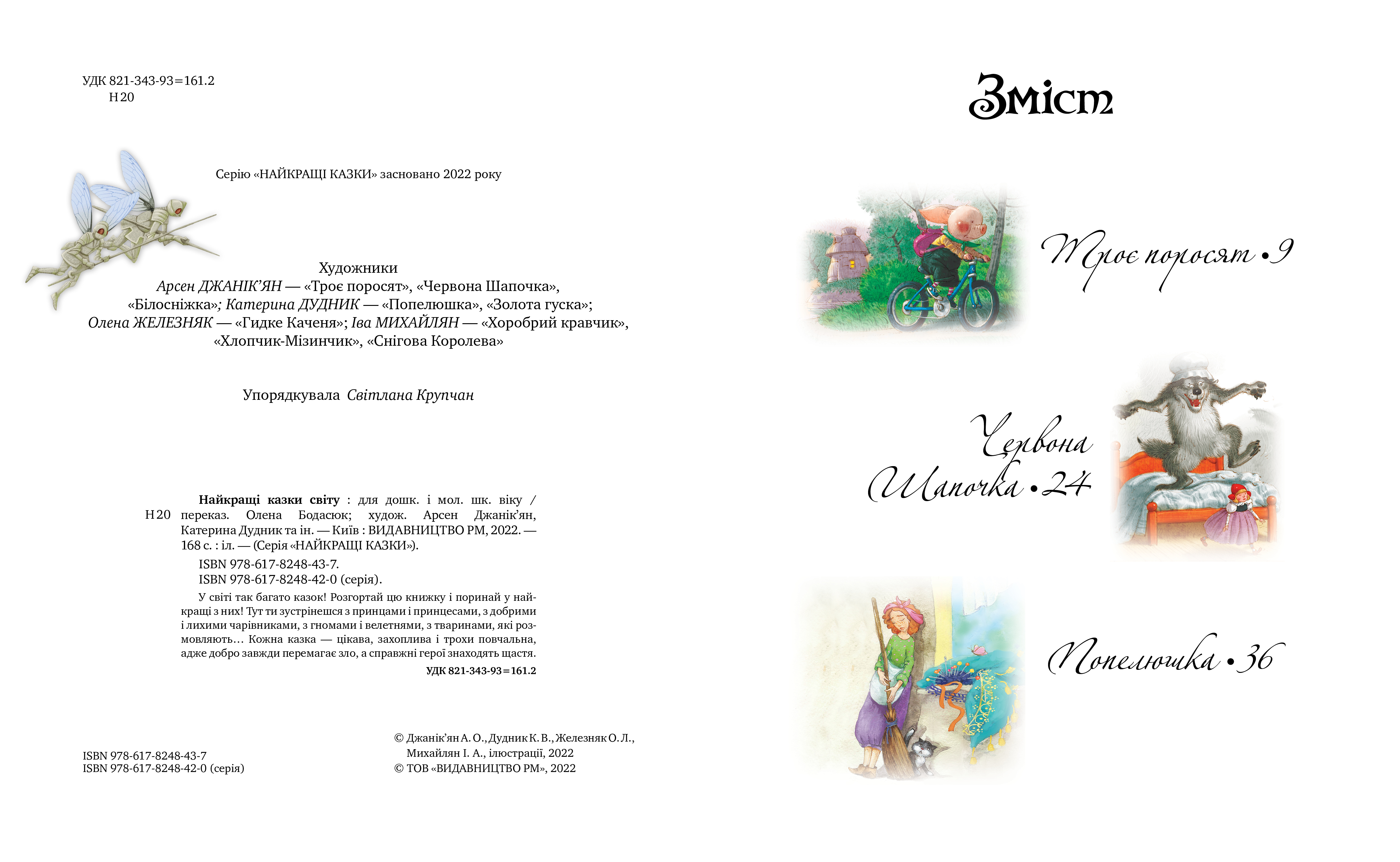У світі так багато казок! Розгортай цю книжку і поринай у найкращі з них! Тут ти зустрінешся з принцами і принцесами, з добрими і лихими чарівниками, з гномами і велетнями, з тваринами, які розмовляють… Кожна казка — цікава, захоплива і трохи повчальна, адже добро завжди перемагає зло, а справжні герої знаходять щастя.