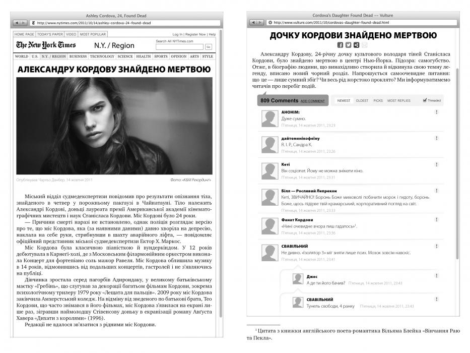 Відчуття реальності описаних у романі подій додають скриншоти з сайтів. Поґуґли, може, і тобі вдасться зайти на «Чорну дошку»?..