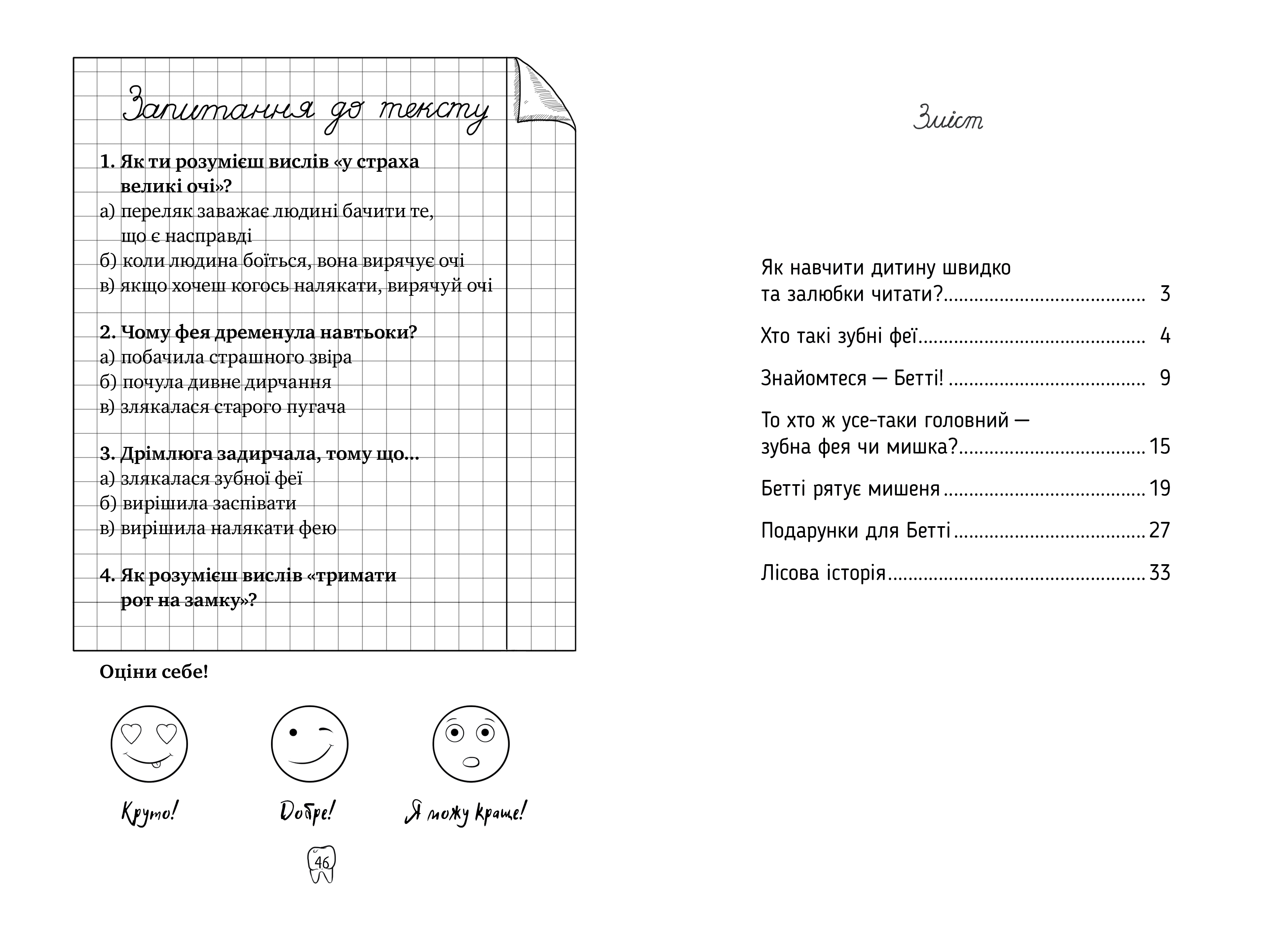 А що ти скажеш, якщо, прочитавши лише кілька сторінок «Оповідок зубної феї», ти вже значно покращиш техніку читання?! У цій книжці літери великі, а рядки короткі; тексту мало, зате повно малюнків, які можна розфарбовувати! Хіба не ідеальна книжка для тебе?