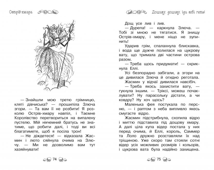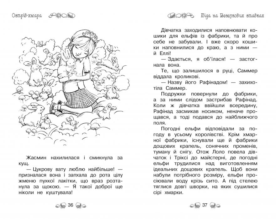 У третій книжці Еллі, Саммер і Жасмин потрапили на Острів-хмару, що літає в небі над Таємним Королівством. Вони дізналися, що на пружких хмарах можна стрибати, як на батуті! Оце чудасія! Однак королева Злюча ненавидить радість і веселощі. Вона замислила знищити повітряний острів...