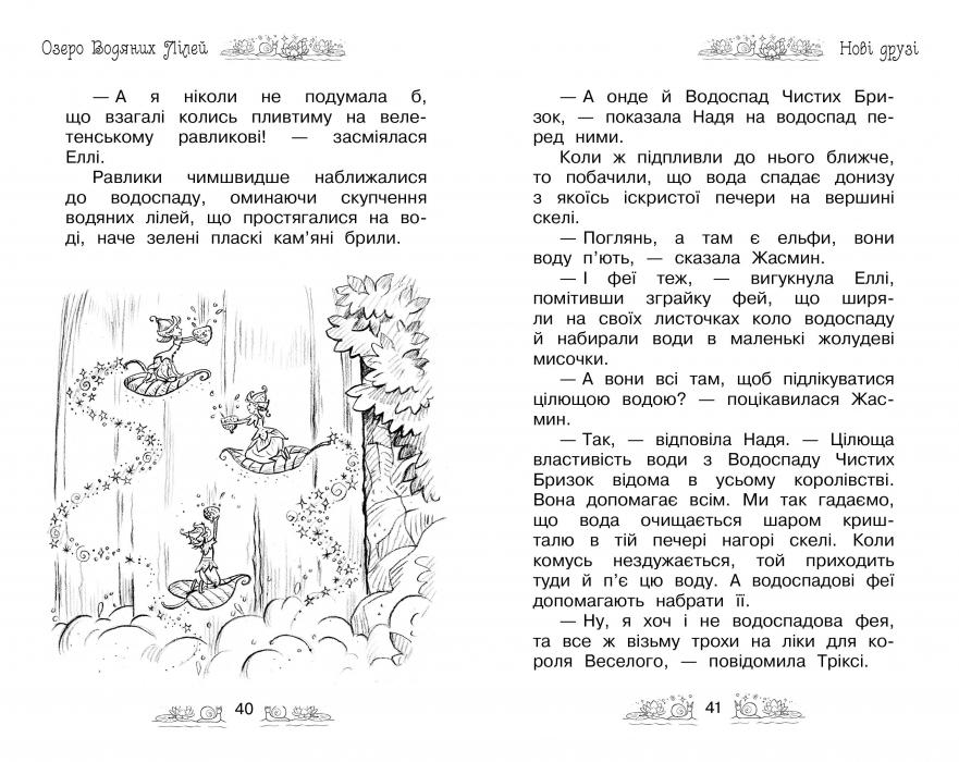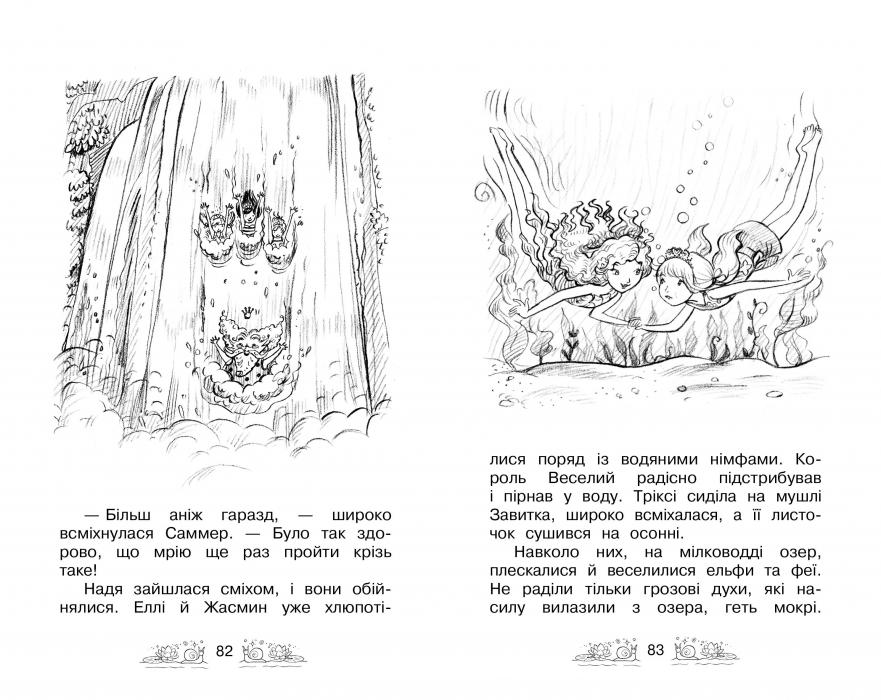Так чудово поплескатися в прозорому озері, де квітнуть білосніжні лілії! Веселі синьоокі німфи вже показали Еллі, Саммер і Жасмин водоспад із цілющою водою. Але тут, як завжди, втрутилася підступна королева Злюча! Що вона зробила з водоспадом? Чи вдасться подружкам повернути його назад? Чи добудуть вони четвертий інгредієнт для еліксиру? Чи бідному королю Веселому вже нічим не зарадити, і йому доведеться стати жахливою жабою?!