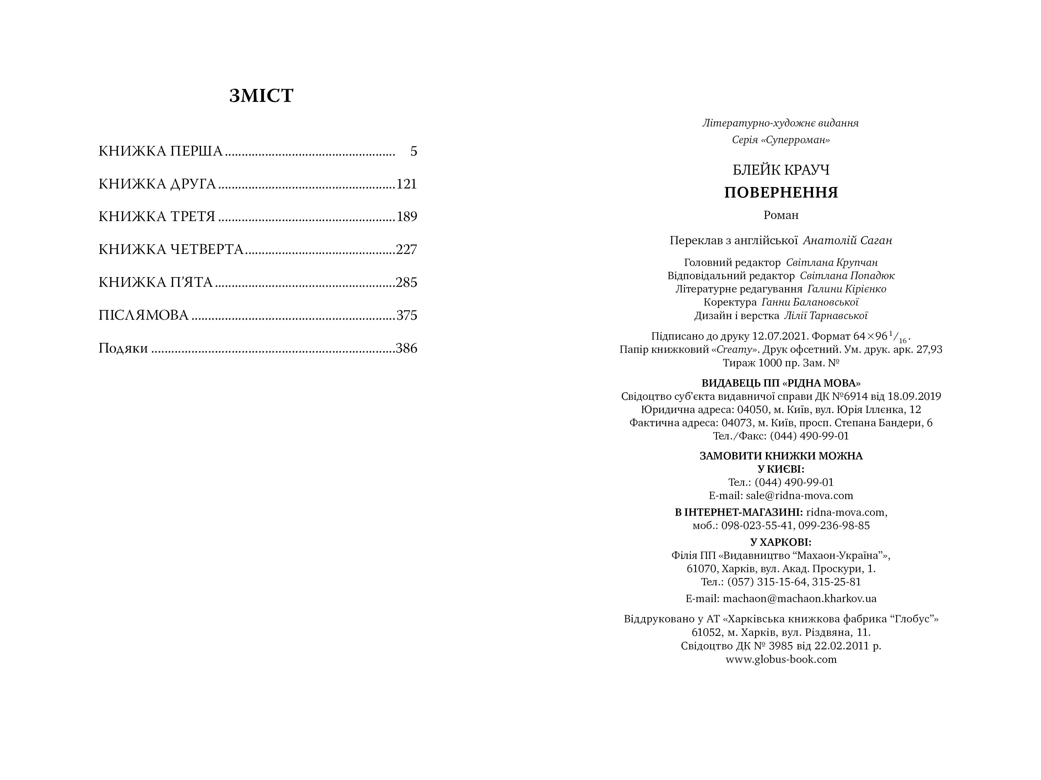 У романі «Повернення» Блейк Крауч не лише створив альтернативну реальність, а й змусив ще раз замислитися про те, що існування людства залежить від кожного з нас…