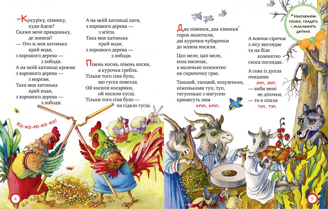 Забавлянки і колисанки, потішки і примовлянки… Cкільки тепла, мудрості, гумору і доброти в цих віршах. Прийшовши до нас із сивої давнини, вони продовжують зв'язок поколінь і мають неабияке значення для раннього гармонійного розвитку дитини. Читайте і примовляйте малечі ці вірші, співайте народні пісні не лише, коли хочете забавити дитину, а й під час пальчикової гімнастики, годування, купання тощо. Винагородою будуть довгоочікувані перші слова маленьких розумників.