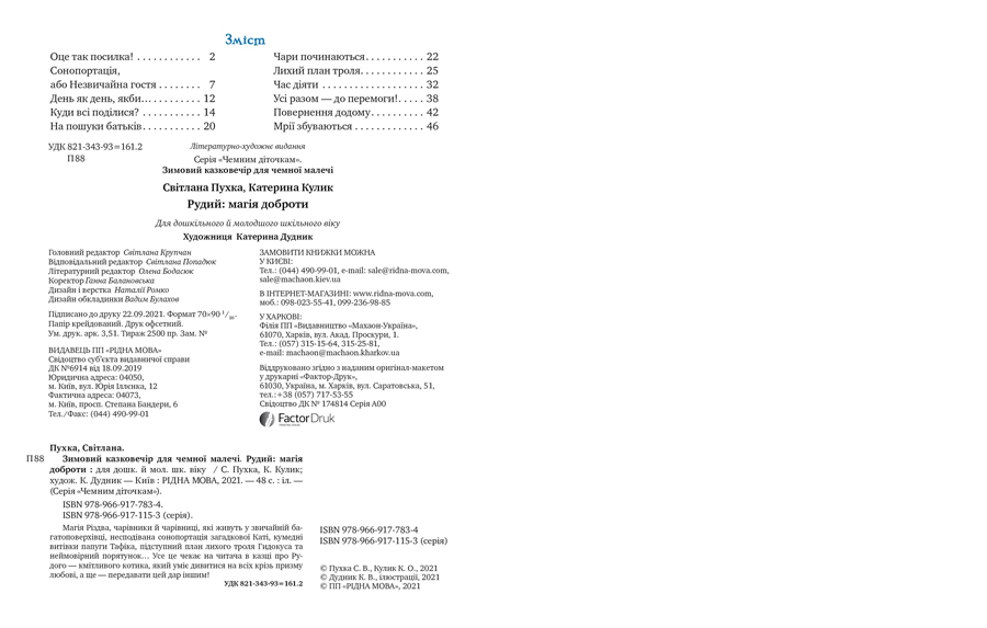 Магія Різдва, чарівники й чарівниці, які живуть у звичайній багатоповерхівці, несподівана сонопортація загадкової Каті, кумедні витівки папуги Тафіка, підступний план лихого троля Гидокуса та неймовірний порятунок… Усе це чекає на читача в казці про Рудого — кмітливого котика, який уміє дивитися на всіх крізь призму любові, а ще — передавати цей дар іншим!