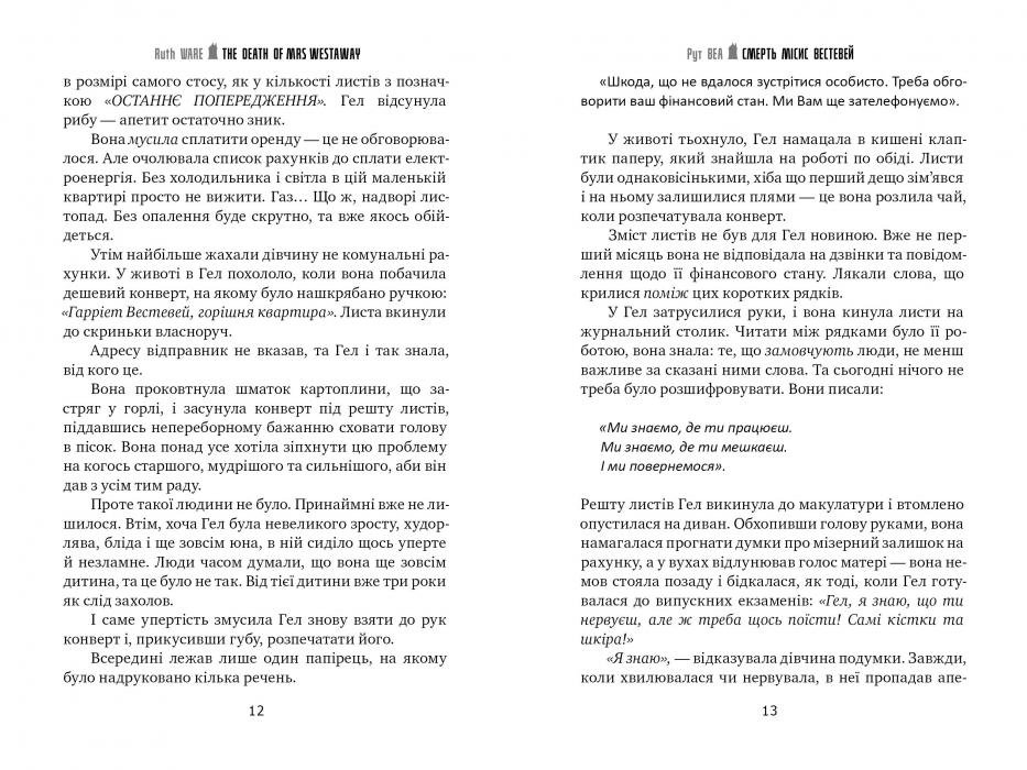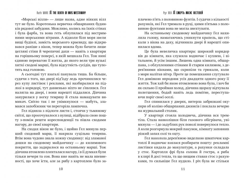 Психологічний трилер «Смерть місис Вестевей» тримає читача в напрузі до останньої сторінки. Про що попереджають карти Таро? Чому місис Вестевей залишила все своє майно незнайомці? Куди зникла Мод Вестевей? І врешті, хто й навіщо хоче вбити Гел? Навряд чи вам вдасться зрозуміти це раніше, ніж задумувала авторка…