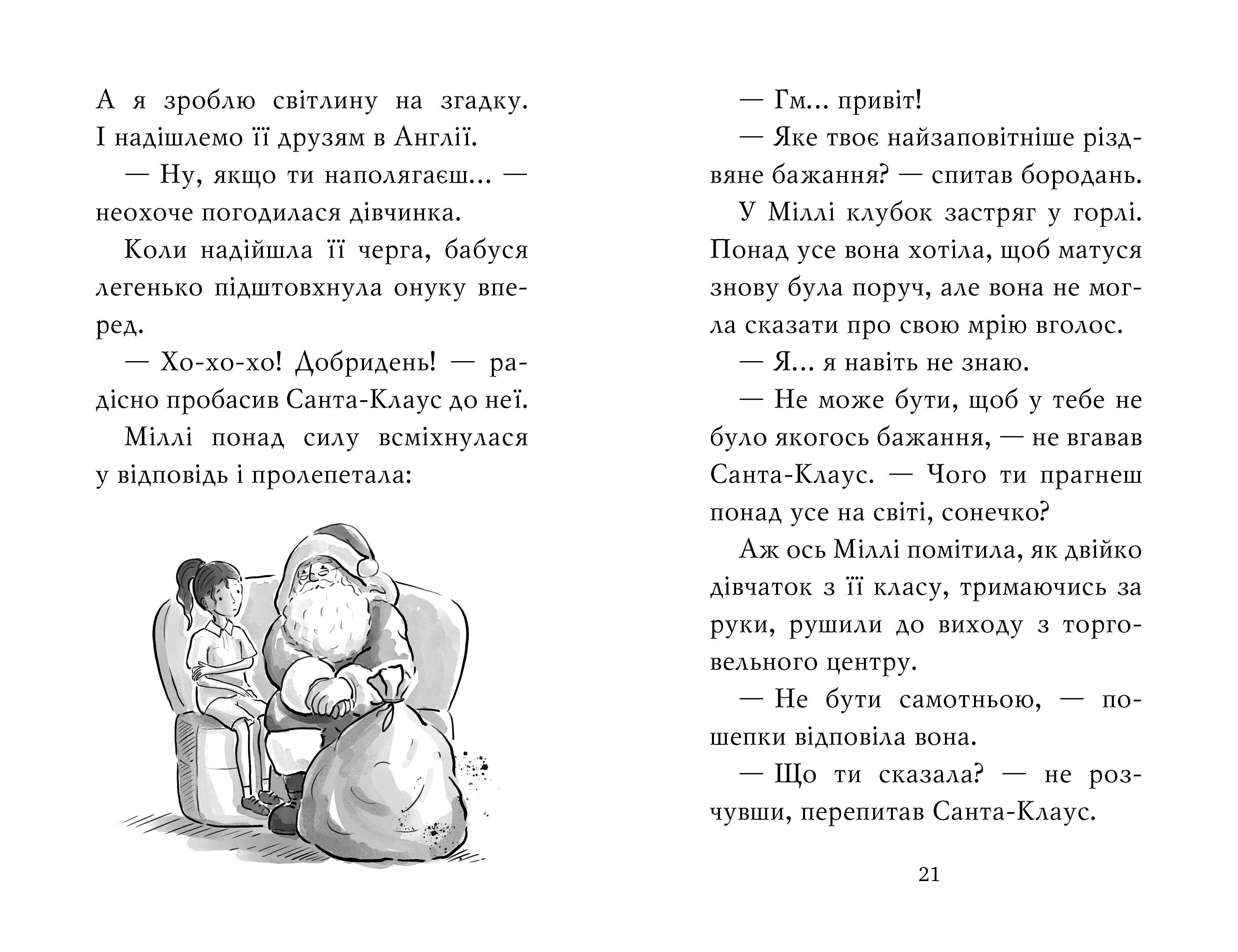 Найзаповітніше різдвяне бажання Міллі — знову обійняти матусю… Довгі літні канікули в Австралії зовсім не тішать дівчинку… Утім, коли вона знаходить на березі вимазане мазутом пінгвіненя, в неї раптом виникає ще одне бажання — врятувати його! Міллі дуже полюбила Зіроньку, як вона назвала пташеня, адже сумує за матусею, а також за друзями, які залишилися в Англії.