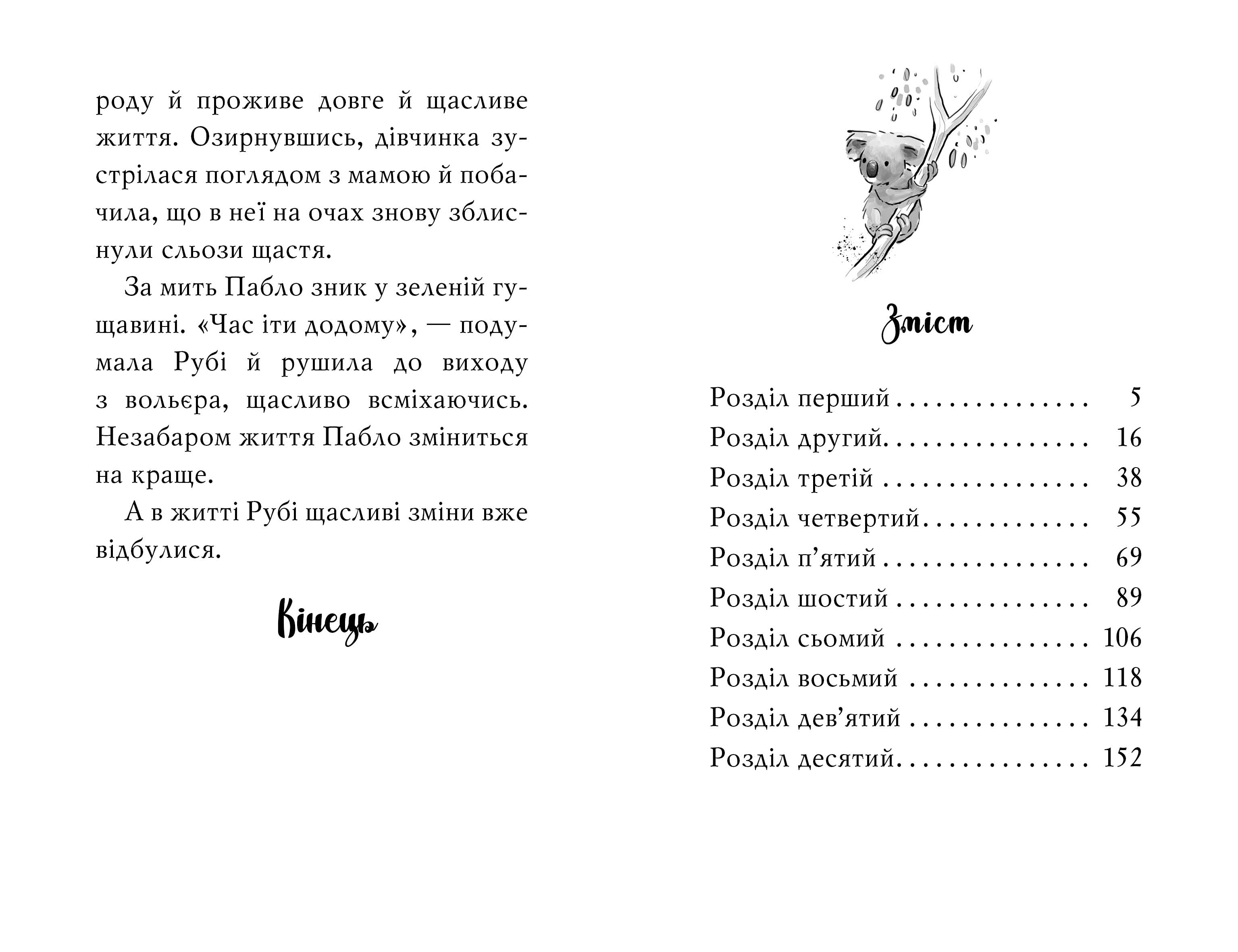 Рубі полюбляє малювати акварельними фарбами, обожнює тварин та колекціонує цікаві факти про них. Дівчинку дратують гучні звуки, а різкі запахи й картопляне пюре з грудочками викликають огиду. Але найбільше вона не терпить раптових змін у житті. Утім, коли Рубі знаходить на подвір’ї осиротіле коаленя, відбувається неймовірне — дівчинка стає доглядачкою звірятка!