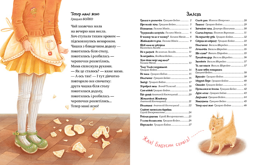 Як приємно довгими зимовими вечорами вмоститися в затишку поруч із мамою чи з татом, із бабусею чи з дідусем і розгорнути книжечку, щоб прочитати жартівливі вірші та роздивитися яскраві малюнки до них! Це ж справжнісінький чарівний книжковечір! Хочеш дізнатися, що робить жабенятко, щоб не змокнути на дощі? А на кого полюють серед ночі три сміливі мишки? Або про те, як малий Грицько заліз на вершечок дуба? І ще про всі-всі кумедні пригоди малят і звірят? То вмощуйся зручніше та мерщій розгортай цю книжку!
