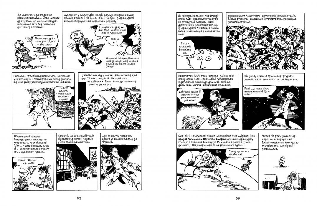 Історії не повернути назад, але можна її уявити, особливо, роздивляючись картинки блискучого автора нонфікшн-коміксів Ларрі Ґоніка. У цьому томі «Історії» оповідь починається з епохи Просвітництва, охоплює два з половиною століття, з революціями, суспільними та економічними зрушеннями, двома світовими війнами, колоніалізмом, науково-технічним прогресом, скасуванням рабства та багатьма іншими подіями, і закінчується XXI ст. з його війнами в Іраку та Афганістані. У своїх дотепних текстах і графічних роботах Ґонік приділяє однакову увагу всім частинам світу, оживляючи минуле, і ми можемо поглянути на історію під новим, незвичним кутом.