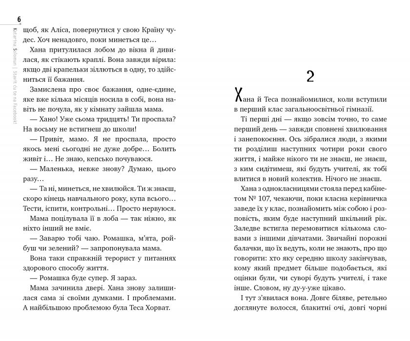 Хана й Теса познайомилися, коли вступили в гімназію. Та від самого початку в їхніх відносинах щось пішло не так: дві героїні йдуть у нове життя різними шляхами… Перше кохання, ревнощі й заборонені прийоми — ось ключові складові оповіді, що не дають відірватися від читання ні на мить. А поряд іще й батьки — із задавненими комплексами та різними поглядами на життя: подорослішати мають не лише діти.