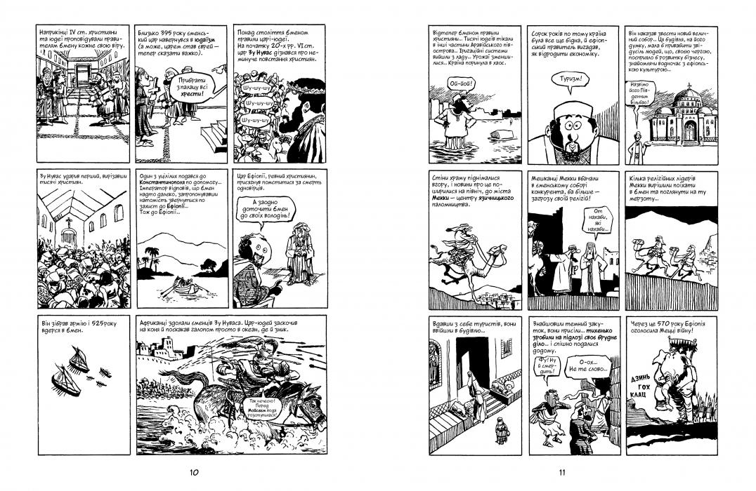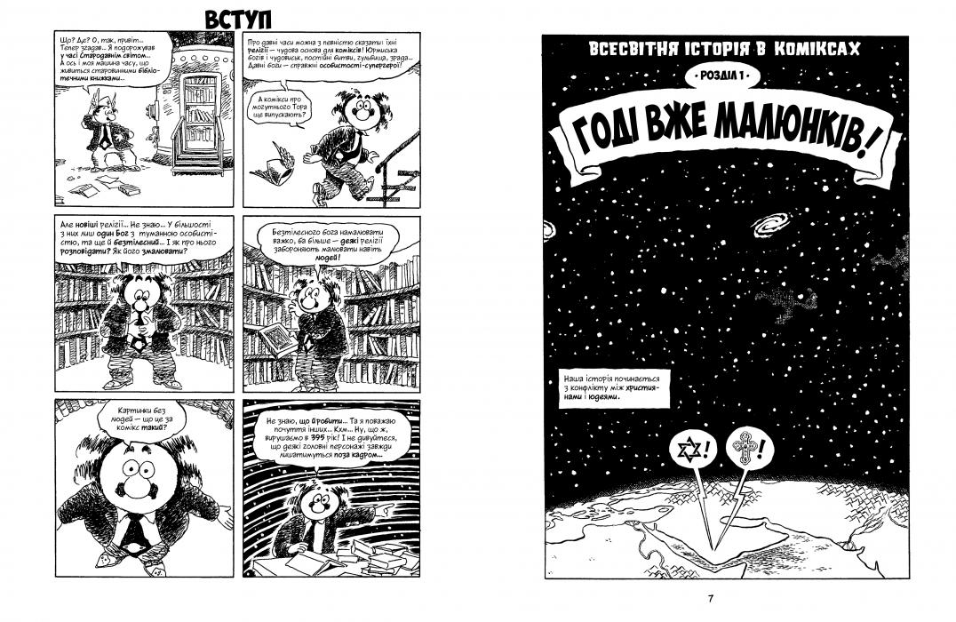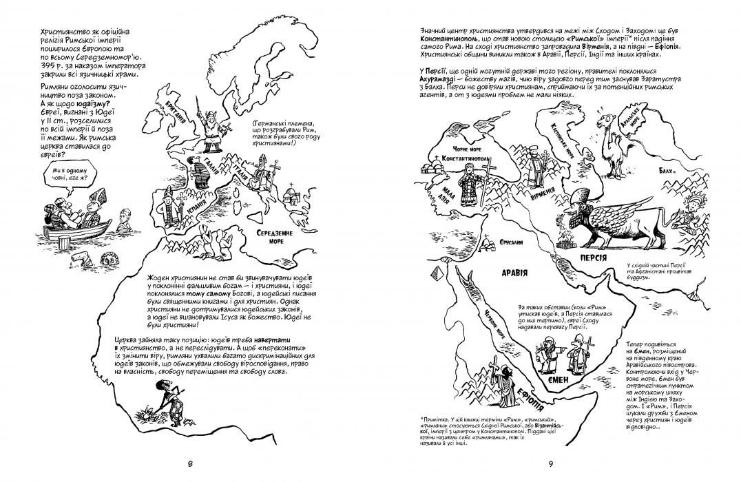 Новий том знаменитої «Всесвітньої історії» Ларрі Ґонік починає з подій 395 року — закриття язичницьких храмів в Європі — і закінчує першою експедицією Христофора Колумба, що відбулася в 1492-му. Між цими двома датами в світі відбувалося дуже багато: зародження ісламу, формування великих тюркських і китайських династій, Хрестові походи… Життя Візантійської імперії, історія Африки, Китаю, Індії та Японії, завоювання азійських кочовиків, лицарі, інквізиція, чума і Ренесанс у Європі — безліч тем і сюжетів, майстерно пов’язаних в єдине ціле і представлених мовою лаконічної графіки, дають яскраву, калейдоскопічну картину середньовічної історії.