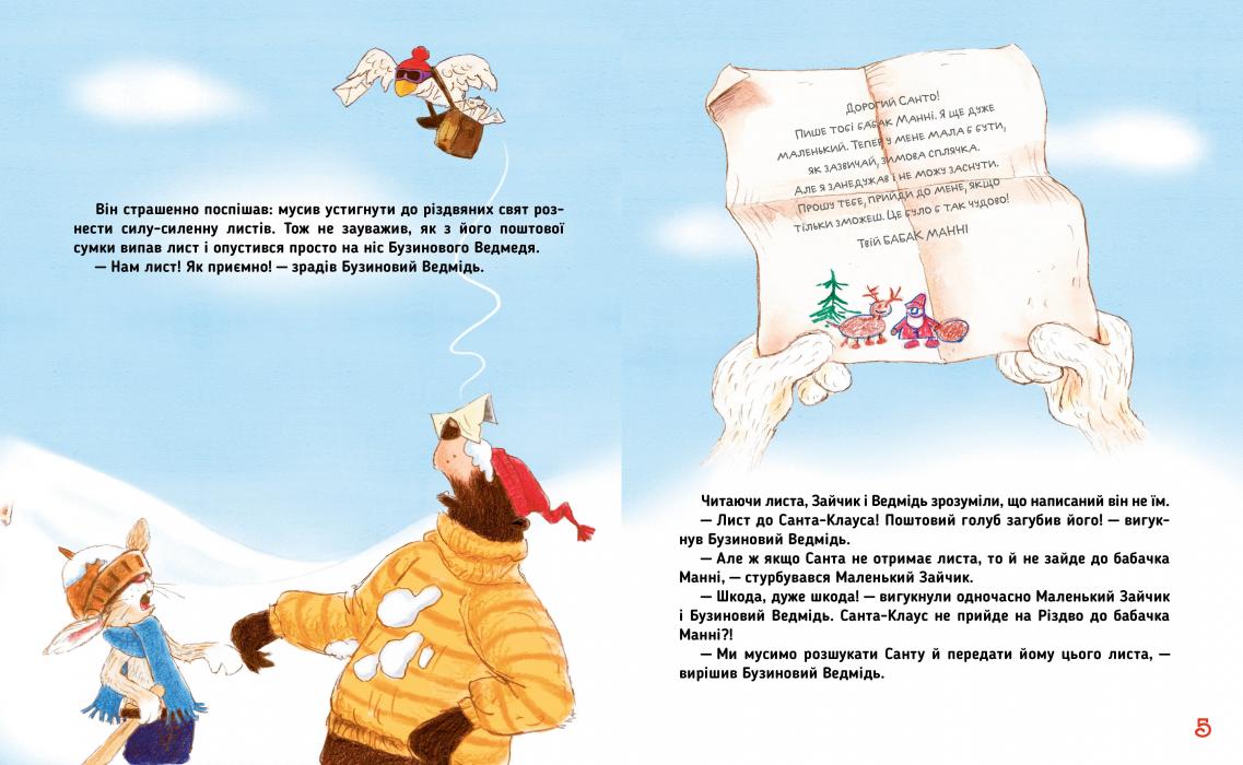 Чи є кращі дні в році, ніж різдвяні? Чекаючи на Святвечір, Маленький Зайчик і Бузиновий Ведмідь гралися у сніжки. Раптом їм до рук потрапив лист, адресований самому Санта-Клаусу, — відтоді й починаються захопливі пригоди! Про те, як друзі допомогли маленькому бабачку Манні, ти дізнаєшся з цієї книжки!