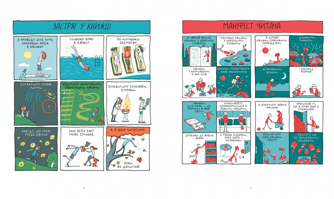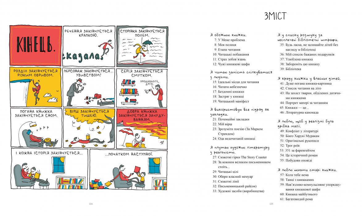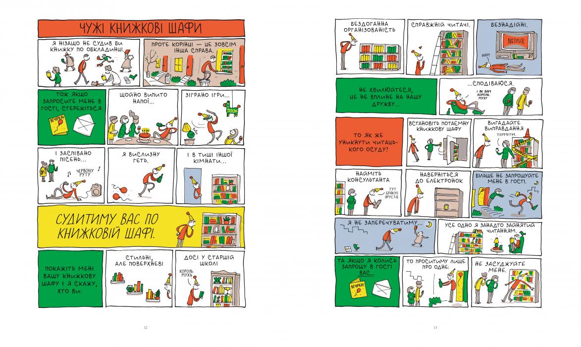 У цій гумористичній збірці коміксів на одну-дві сторінки автор досліджує книголюбство в усіх сенсах — від дитячого фанатизму до читацьких звичок і письменницьких страждань. Ця сповнена сюрпризів книжка точно не залишить байдужими ваших рідних книголюбів!